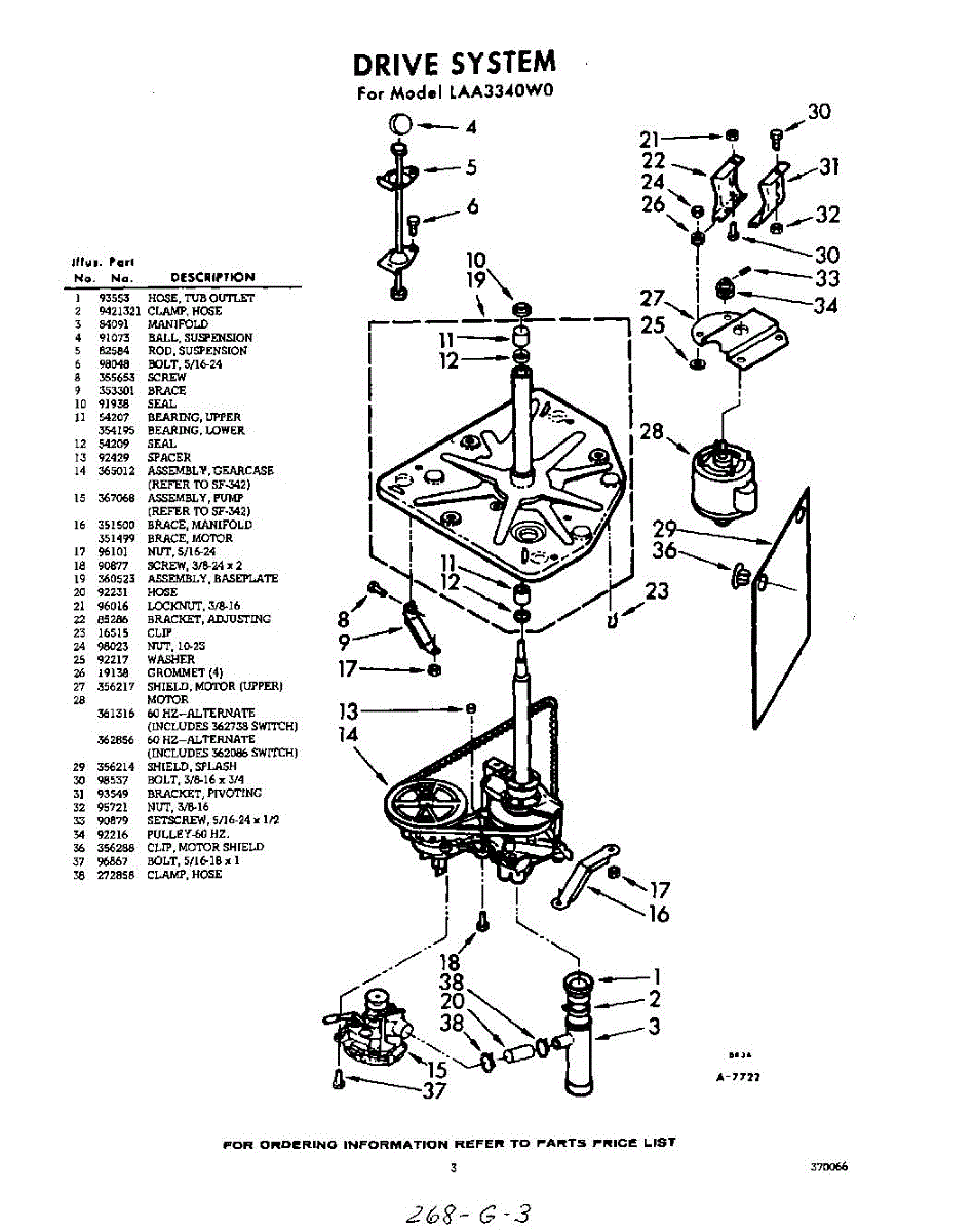 Parts for Whirlpool LAA3340W0: 03 - Drive Parts