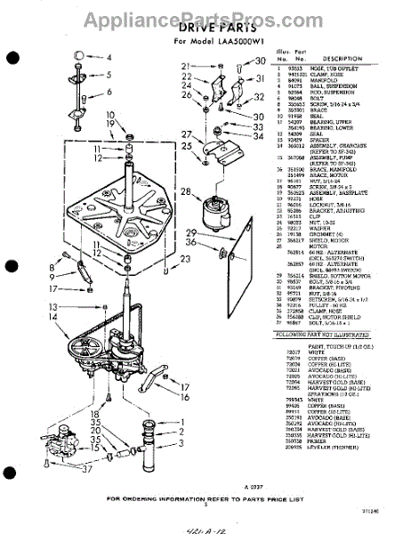 Parts for Whirlpool LAA5000W1: 03 - Drive Parts