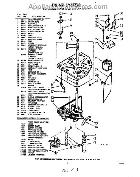 Parts for Whirlpool LAA5520W1: 03 - Drive Parts