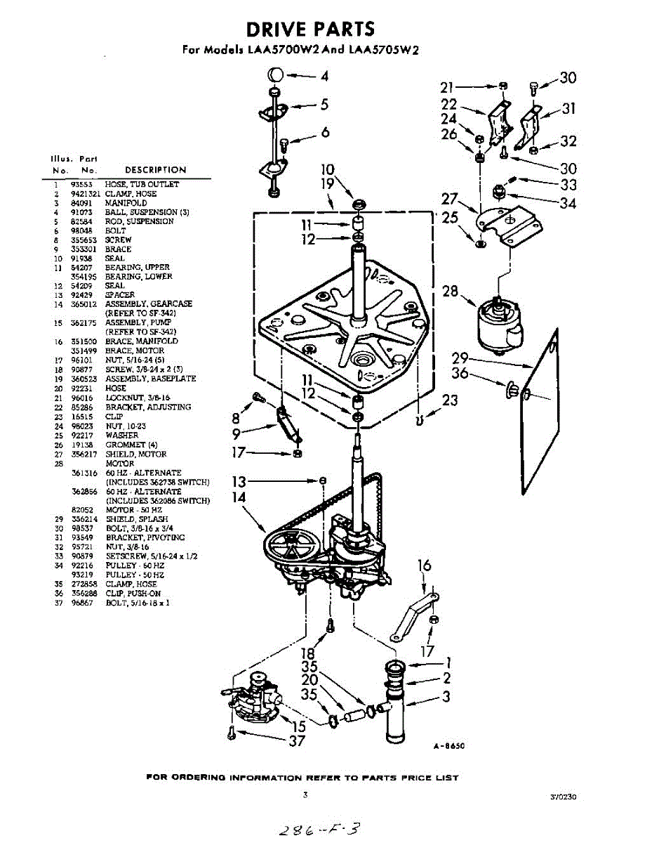 Parts for Whirlpool LAA5700W2: 03 - Drive Parts