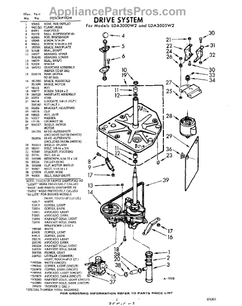 Parts for Whirlpool LDA3000W2: 03 - Drive Parts