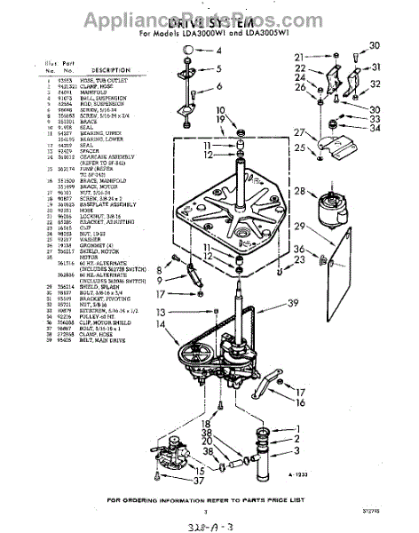 Parts for Whirlpool LDA3005W1: 03 - Drive Parts