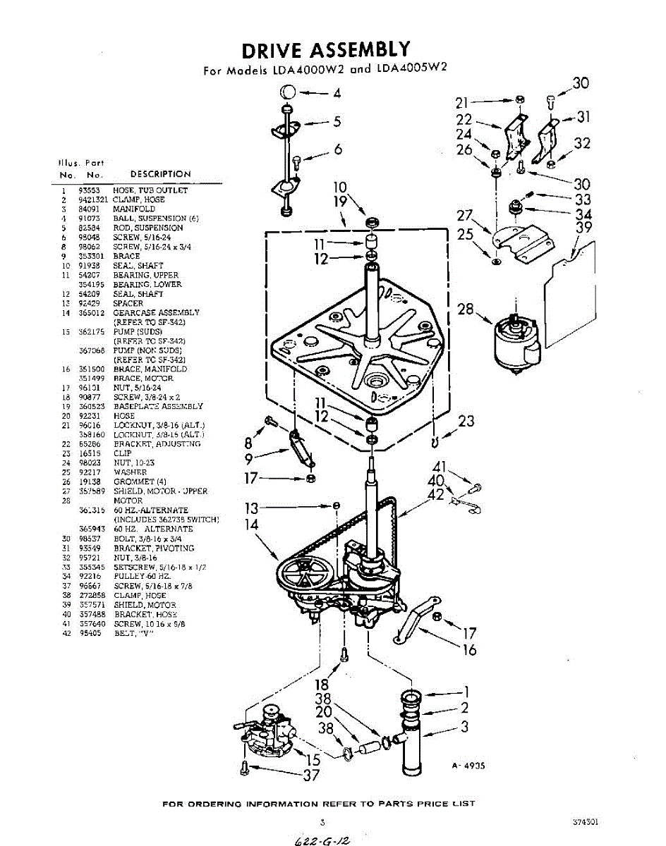 Parts for Whirlpool LDA4000W2: 03 - Drive Parts