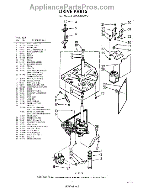 Parts for Whirlpool LDA5300W0: 03 - Drive Parts