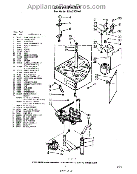 Parts for Whirlpool LDA5300W1: 03 - Drive Parts