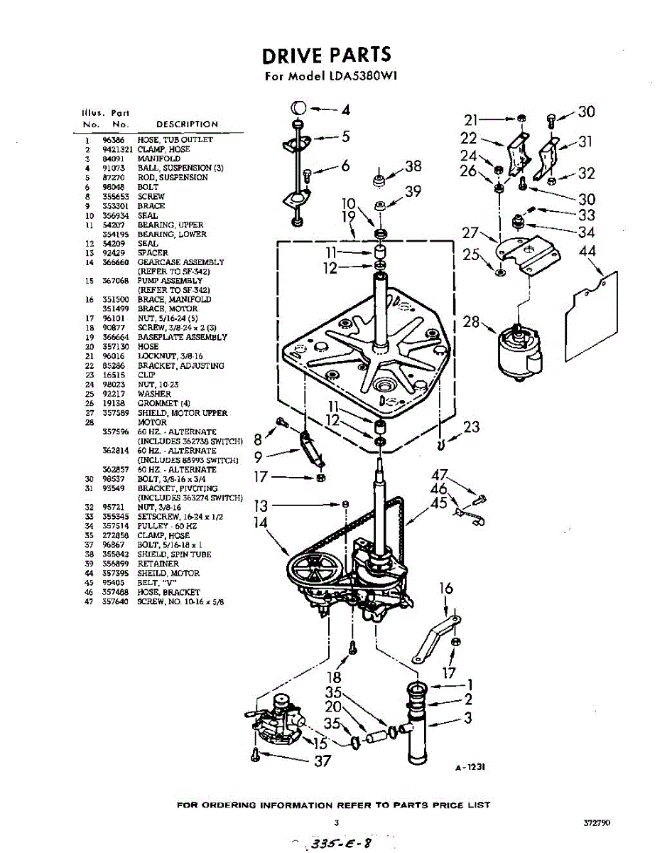 Parts for Whirlpool LDA5380W1: 03 - Drive Parts