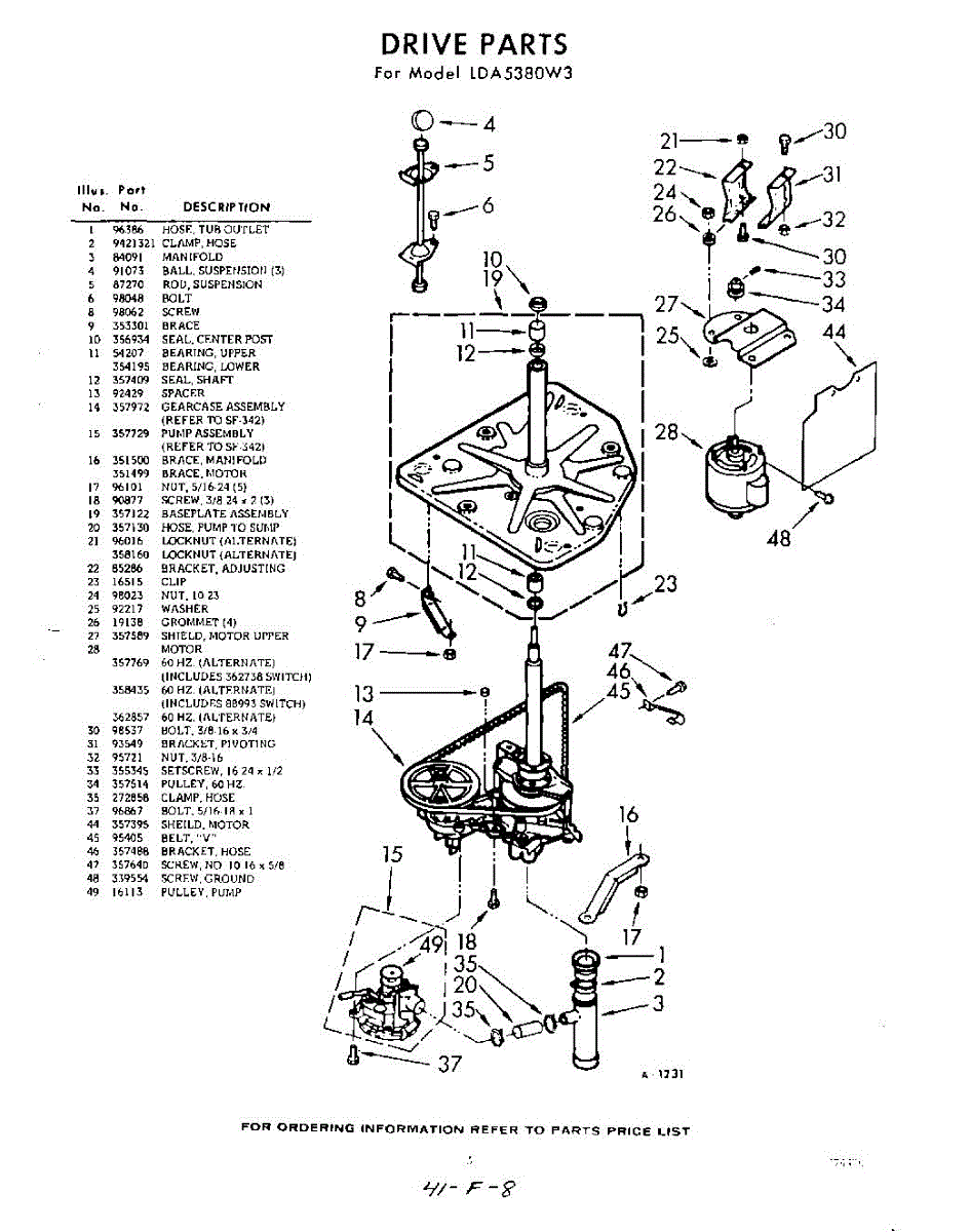Parts for Whirlpool LDA5380W3: 03 - Drive Parts