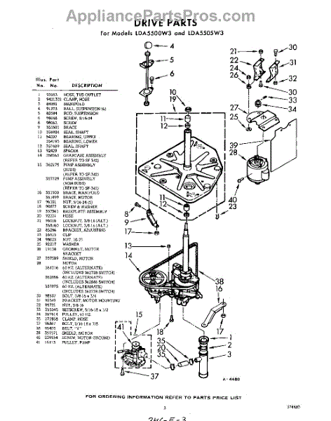 Parts for Whirlpool LDA5505W3: 03 - Drive Parts