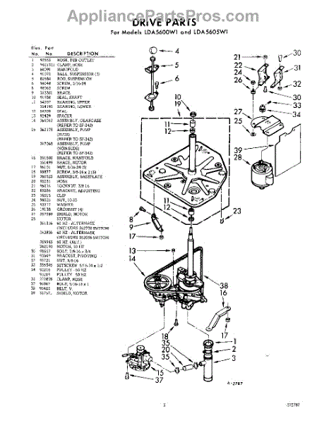 Parts for Whirlpool LDA5605W1: 03 - Drive Parts