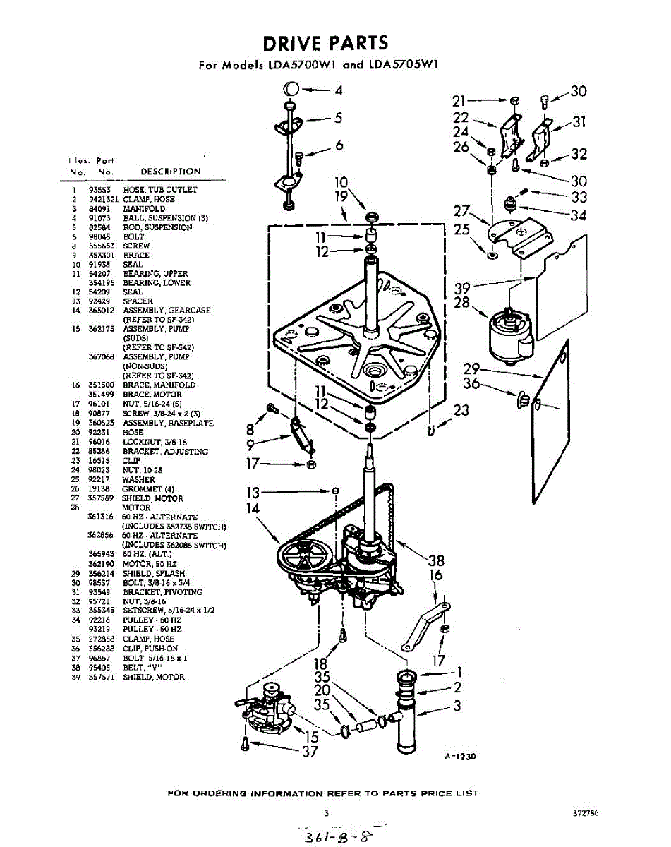 Parts for Whirlpool LDA5705W1: 03 - Drive Parts
