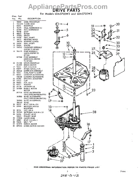 Parts for Whirlpool LDA5705W3: 03 - Drive Parts