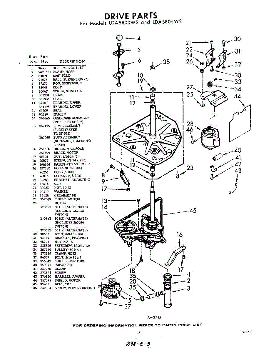 Parts for Whirlpool LDA5805W2: 03 - Drive Parts