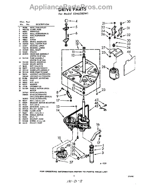 Parts for Whirlpool LDA6380W1: 03 - Drive Parts