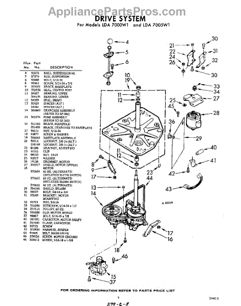 Parts for Whirlpool LDA7000W1: 03 - Drive Parts
