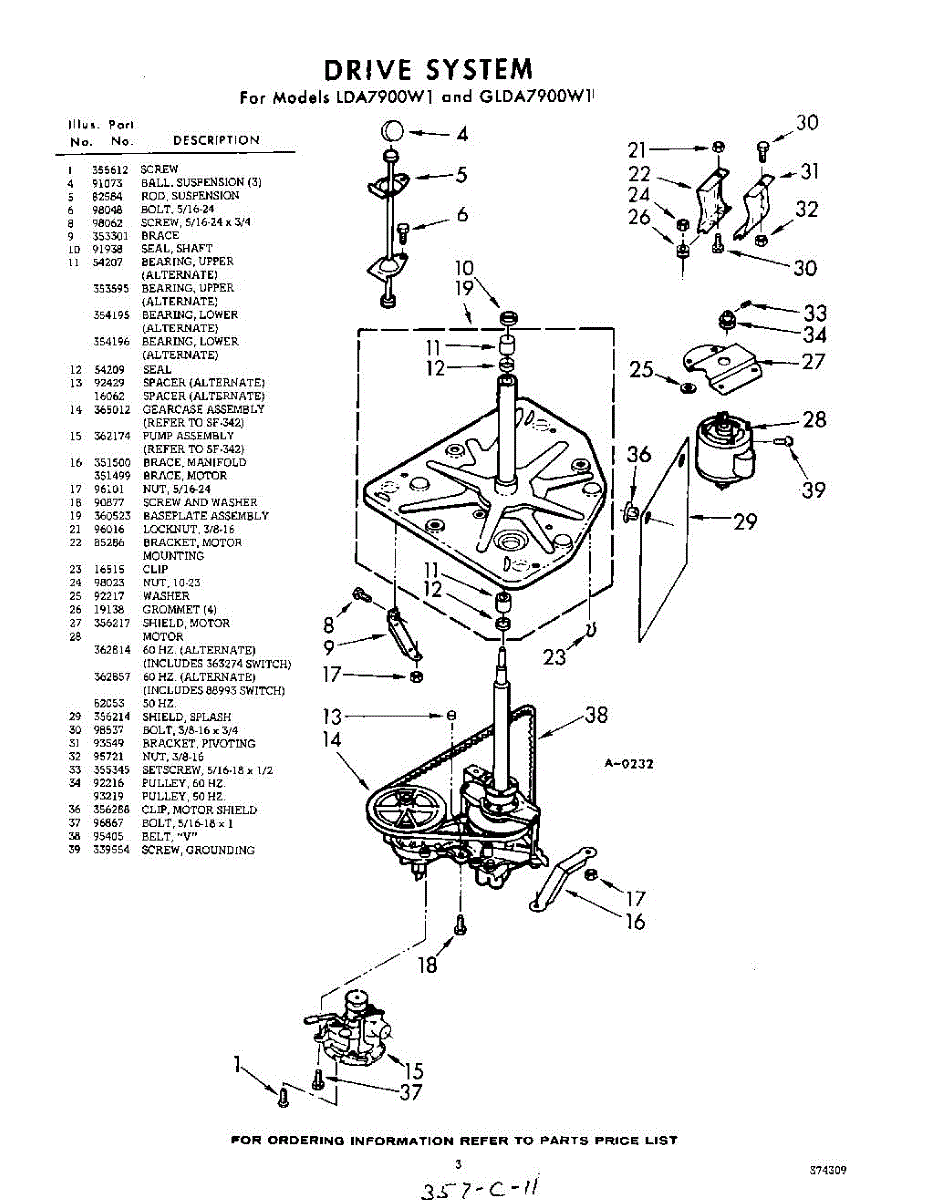 Parts for Whirlpool LDA7900W1: 03 - Drive Parts