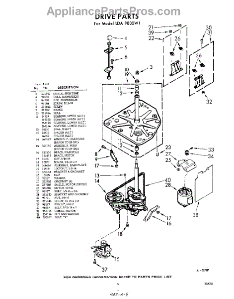 Parts for Whirlpool LDA9800W1: 03 - Drive Parts