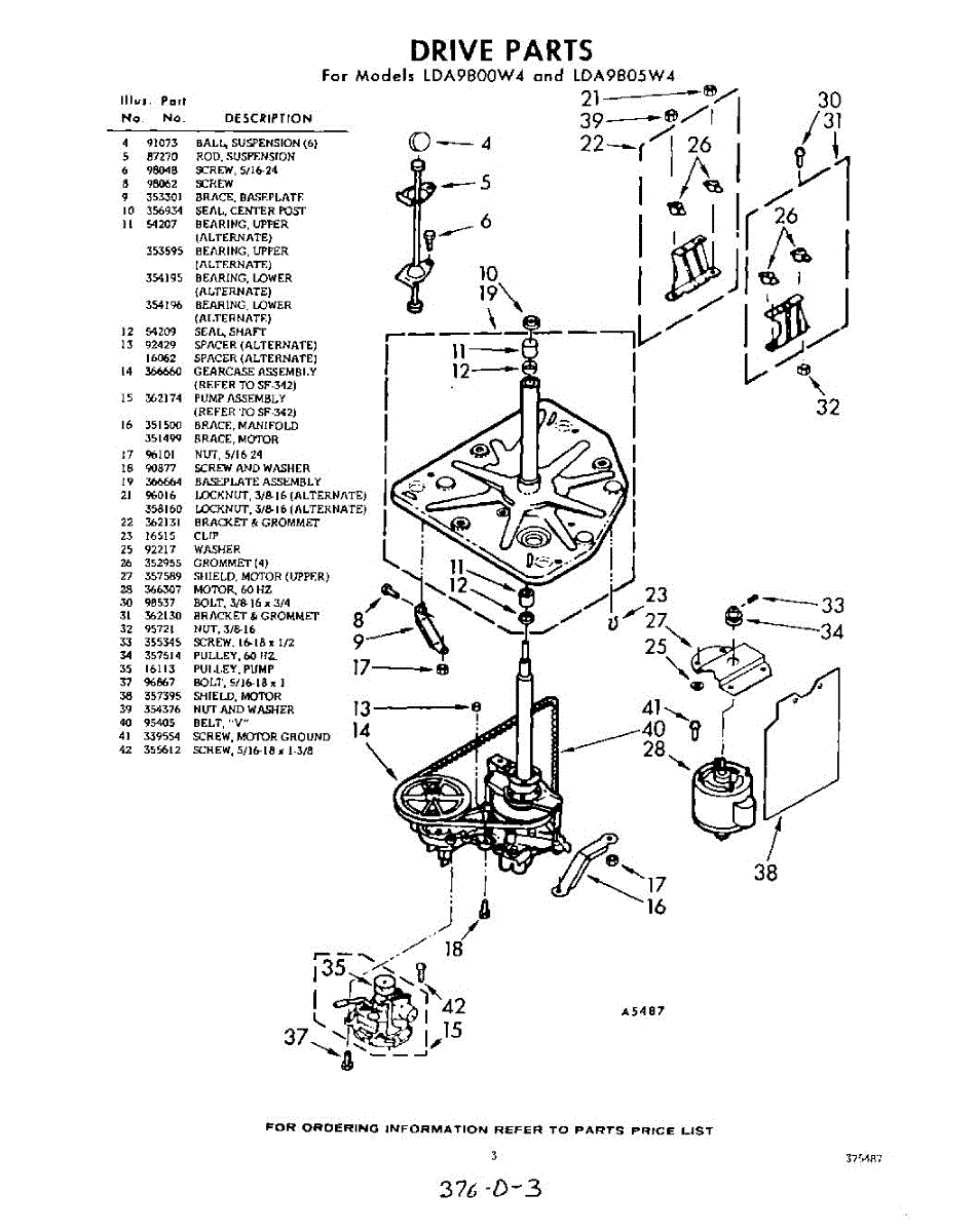 Parts for Whirlpool LDA9800W4: 03 - Drive Parts
