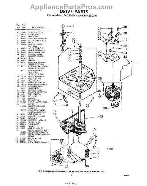 Parts for Whirlpool LFA3800W1: 03 - Drive Parts
