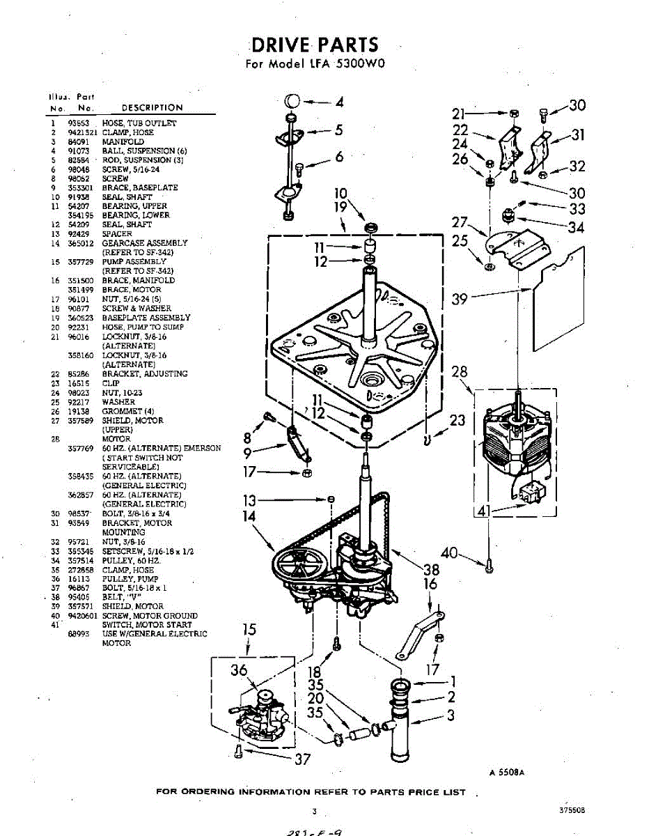 Parts for Whirlpool LFA5300W0: 03 - Drive Parts