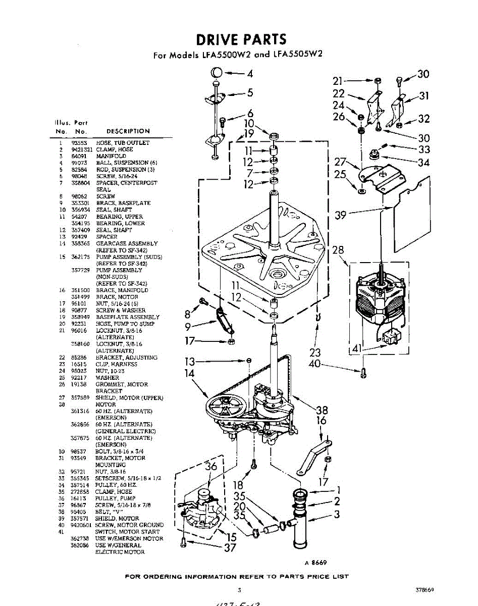 Parts for Whirlpool LFA5500W2: 03 - Drive Parts