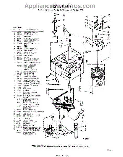 Parts for Whirlpool LFA5505W1: 03 - Drive Parts