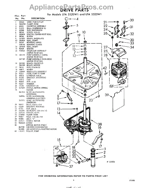 Parts for Whirlpool LFA5525W1: 03 - Drive Parts