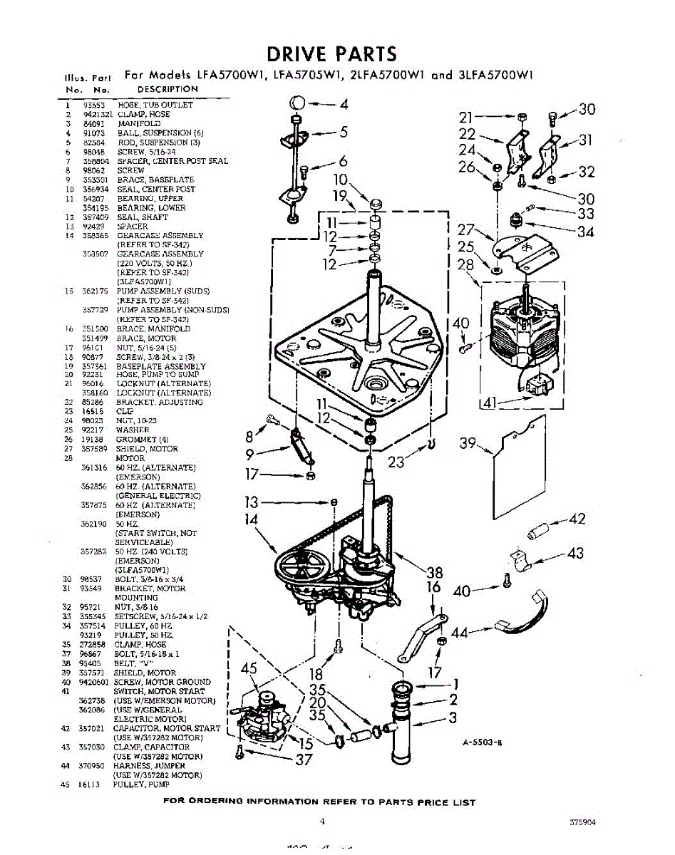 Parts for Whirlpool LFA5705W1: 04 - Drive Parts