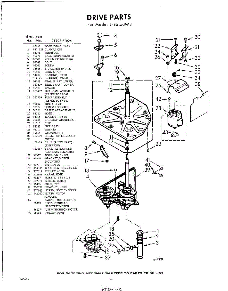 Parts for Whirlpool LFB5150W3: 04 - Drive Parts