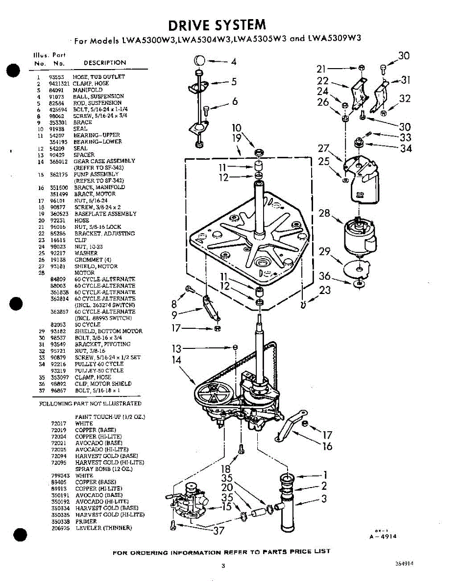 Parts for Whirlpool LWA5309W3: 03 - Drive Parts