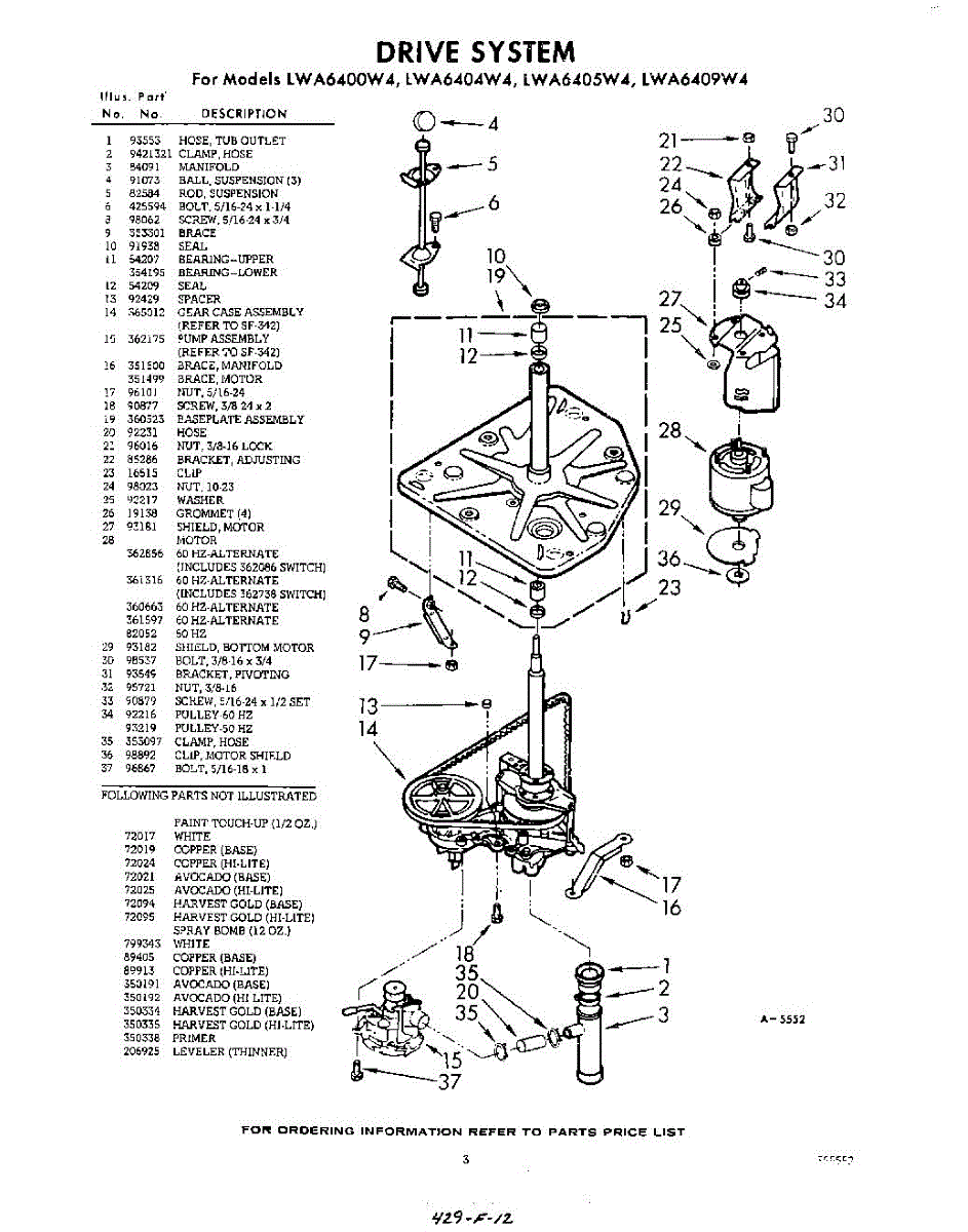 Parts for Whirlpool LWA6400W4: 03 - Drive Parts