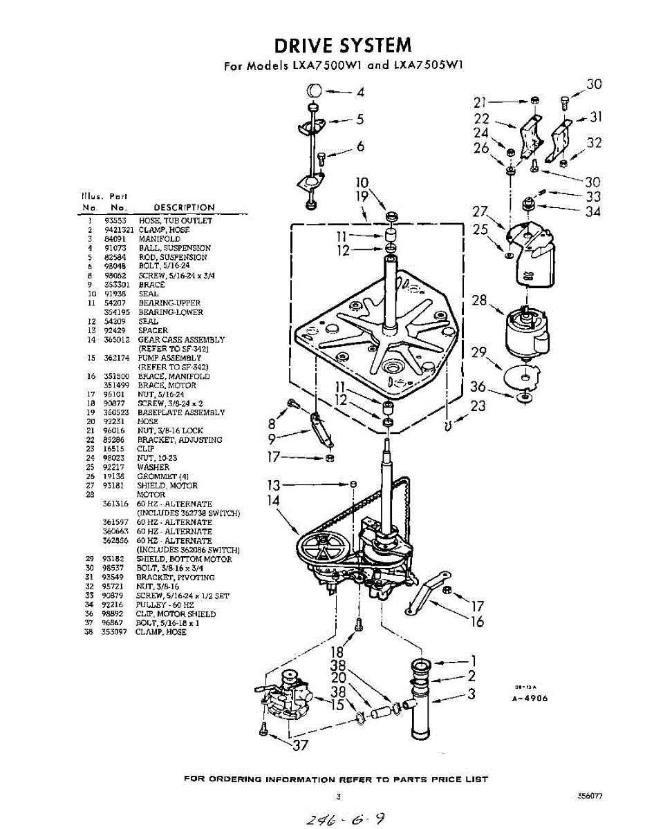 Parts for Whirlpool LXA7505W1: 03 - Drive Parts