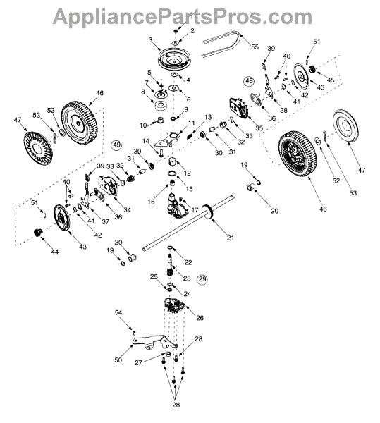 Fix drive issues or loss of self-propulsion with this input pulley assembly. Connects engine power to transmission. Moderate DIY repair, 30-45 minutes.