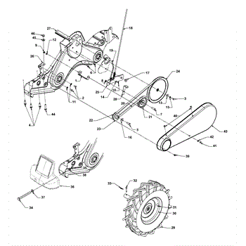 Idler belt keeper for tillers. Secures and guides the drive belt, preventing slippage. Replace if worn, cracked, or belt tracking issues occur. Verify fit with your tiller model number before ordering.