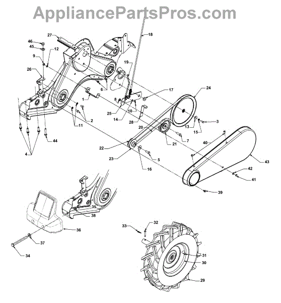 Tiller won't engage or belt slips? This engine pulley outer half works with the inner half to drive the tines. Moderate DIY repair for tillers.
