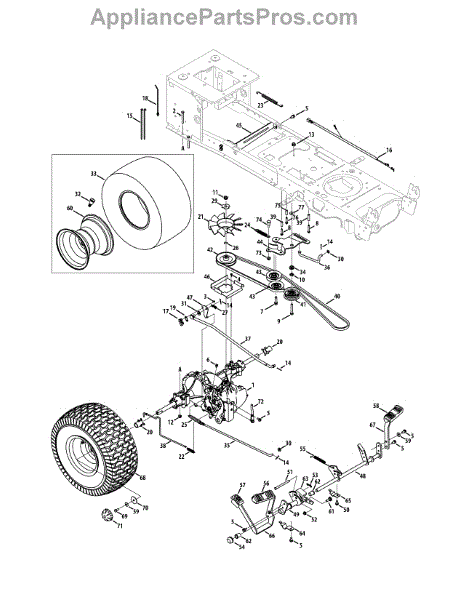 This replacement part is a tire. This is a genuine replacement part made by MTD. This tire is found in many different types of appliances and is responsible for allowing the user to maneuver the machine.A new tire might be needed if the tires are worn down or stripped. This can be due to normal wear and tear. The repair for tires should be quick and easy and is similar to changing tires on cars. Be sure the engine is completely turned off before attempting to replace the tire. Purchasing the correct amount is important as many machines require more than one tire. This part is a genuine OEM replacement part to ensure proper fit and long-lasting use. This tire is also sold individually and is sourced directly from the manufacturer.