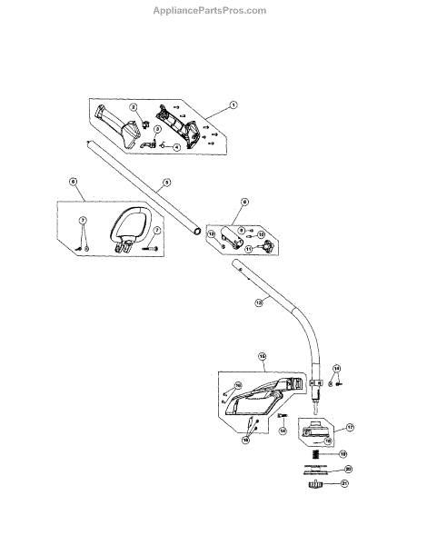 This throttle housing & trigger assembly is a genuine MTD replacement part for a handheld gas lawn trimmer. A lawn trimmer is designed to cut grass, shrubs, bushes, and weeds. The throttle housing & trigger assembly is a kit containing a black plastic throttle housing, a trigger, a spring, and the screws to bind the pieces together. The function of a throttle housing is to house the throttle for the lawn trimmer, which spins the blades at specific velocities, with a full throttle corresponding to full blade velocity. The trigger assembly consists of the trigger itself, the hammer, the disconnector, and the springs, and the function of the trigger is to activate the engine, thereby engaging the throttle.In order to replace the throttle housing, the engine must not be running and the oil should be emptied from the tank. If the throttle housing & trigger assembly is damaged to the point that the lawn trimmer is unusable, the throttle housing & trigger assembly should be removed and replaced immediately. Remember to always wear gloves when handling, repairing, and operating outdoor equipment. This throttle housing & trigger assembly is compatible with the following brands: MTD, Troy-Bilt, Yard Man, and Bolens. This part sold individually.