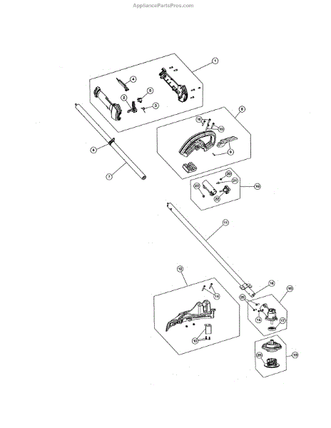 This coupler features a split-boom design that includes the knob, coupler, and the screws required to attach the upper shaft and lower boom before using the trimmer. Because of constant exposure and potential debris impacts, the coupler can become damaged over time and with regular use. The knob and screws can also become damaged or lost, which would require replacing the entire unit with an OEM replacement like the one here. This genuine OEM drive shaft coupler is manufactured by RYOBI and designed for use with their trimmers, as well as machines from MTD, Yard Man, Yard Machines, Bolens, Troy-Bilt, and Cub Cadet. It can also be used with select models of edgers and pruners from these brands. This coupler is sold as an individual assembly with all of the pieces required to complete the installation. The shaft is made of durable metal and the knob is a sturdy plastic piece. It will require a screwdriver with a Philips head to replace this part. Always wear gloves when working on lawn and garden equipment.