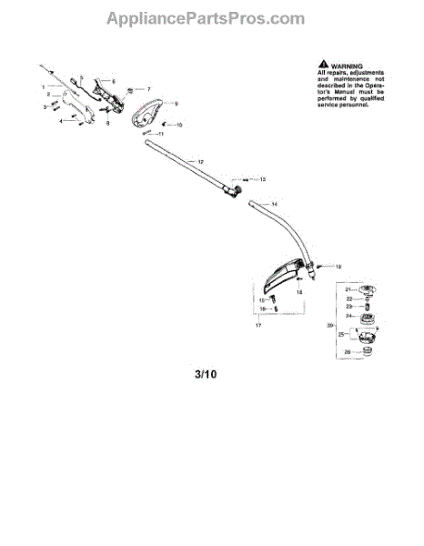 The lower shaft replacement is used for lawn and garden equipment such as trimmers, gas trimmers, and pruners. The shaft is the part that will hold the spool used on these types of equipment. It also connects to the upper shaft.Some of the common problems with the lower drive shaft include worn drive shaft ends, worn bushing, breaks along the metal, or damage to the outer tube. Owners should replace the lower shaft before they use the machine. Continuing to use a trimmer with a broken lower shaft is dangerous and could result in injury or more damage to the machine. The replacement of the lower shaft is relatively simple and will require only a few tools.The replacement part works with certain models of trimmer and pruner from Husqvarna, Weed Eater, and Poulan. This is a genuine OEM replacement part sourced from the manufacturer. The kit is sold individually.