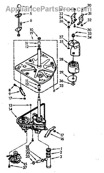 Supports the spin basket on the center post for smooth, quiet rotation. Replace if your washer is noisy, vibrating excessively, or has poor spin performance.