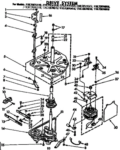 Drive belt transfers motor power to spin the washer drum. Replace if you hear squealing, slipping, or complete spin failure. Verify fit with your model.