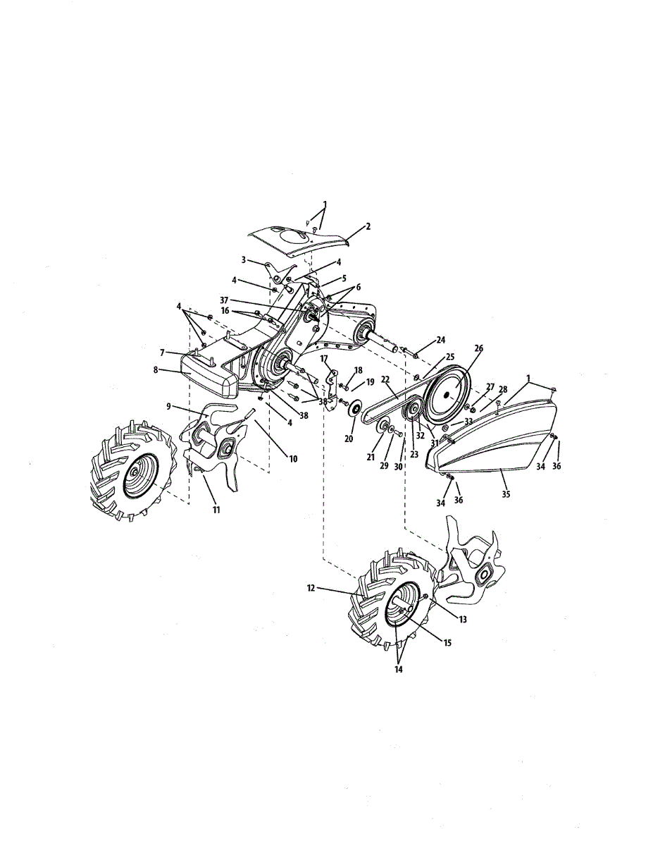 Transmission belt transfers power from engine to wheels on rear-tine tillers. Replace if worn, cracked, or slipping. Verify fit with your model number.