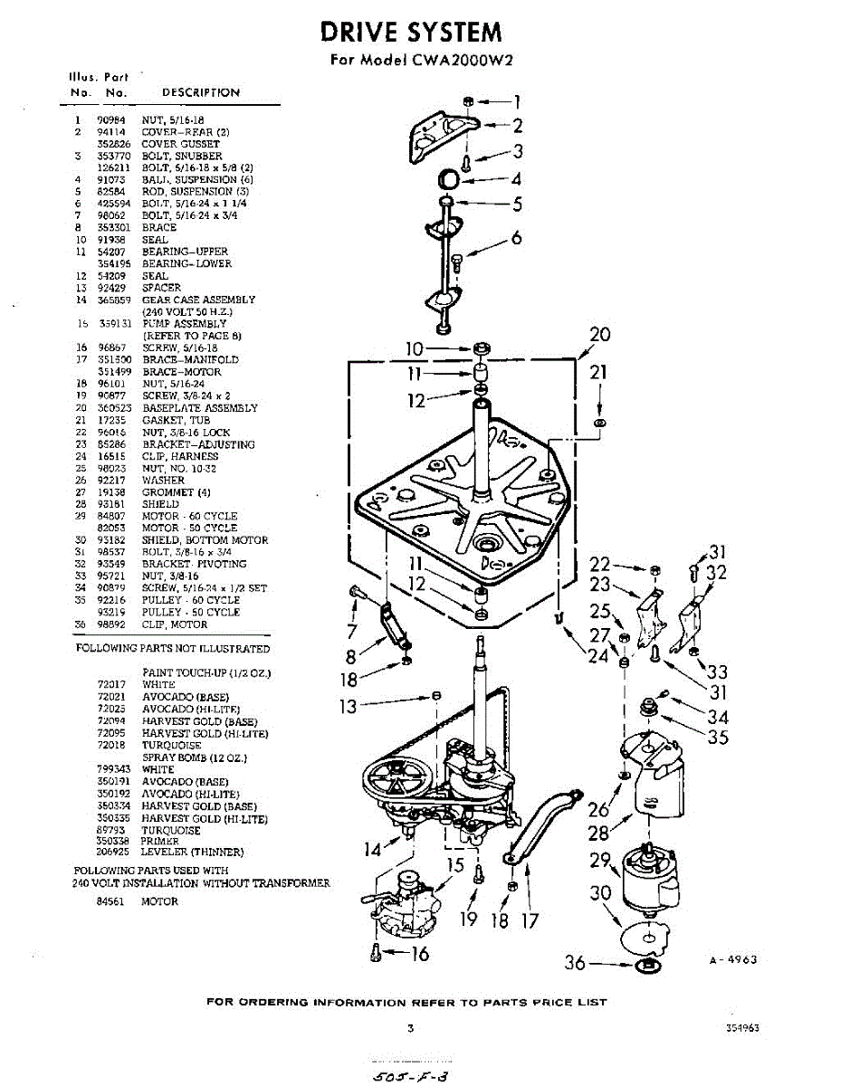 Parts for Whirlpool CWA2004W2: 03 - Drive System Parts