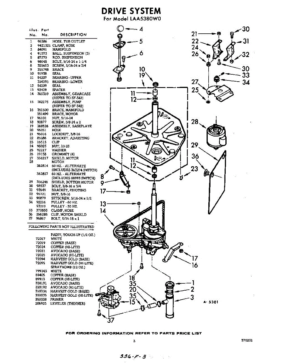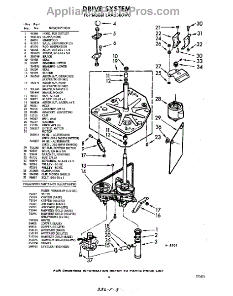 Parts for Whirlpool LAA5380W0: 03 - Drive System Parts
