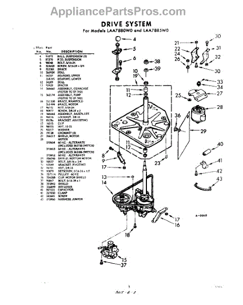 Parts for Whirlpool LAA7885W0: 03 - Drive System Parts