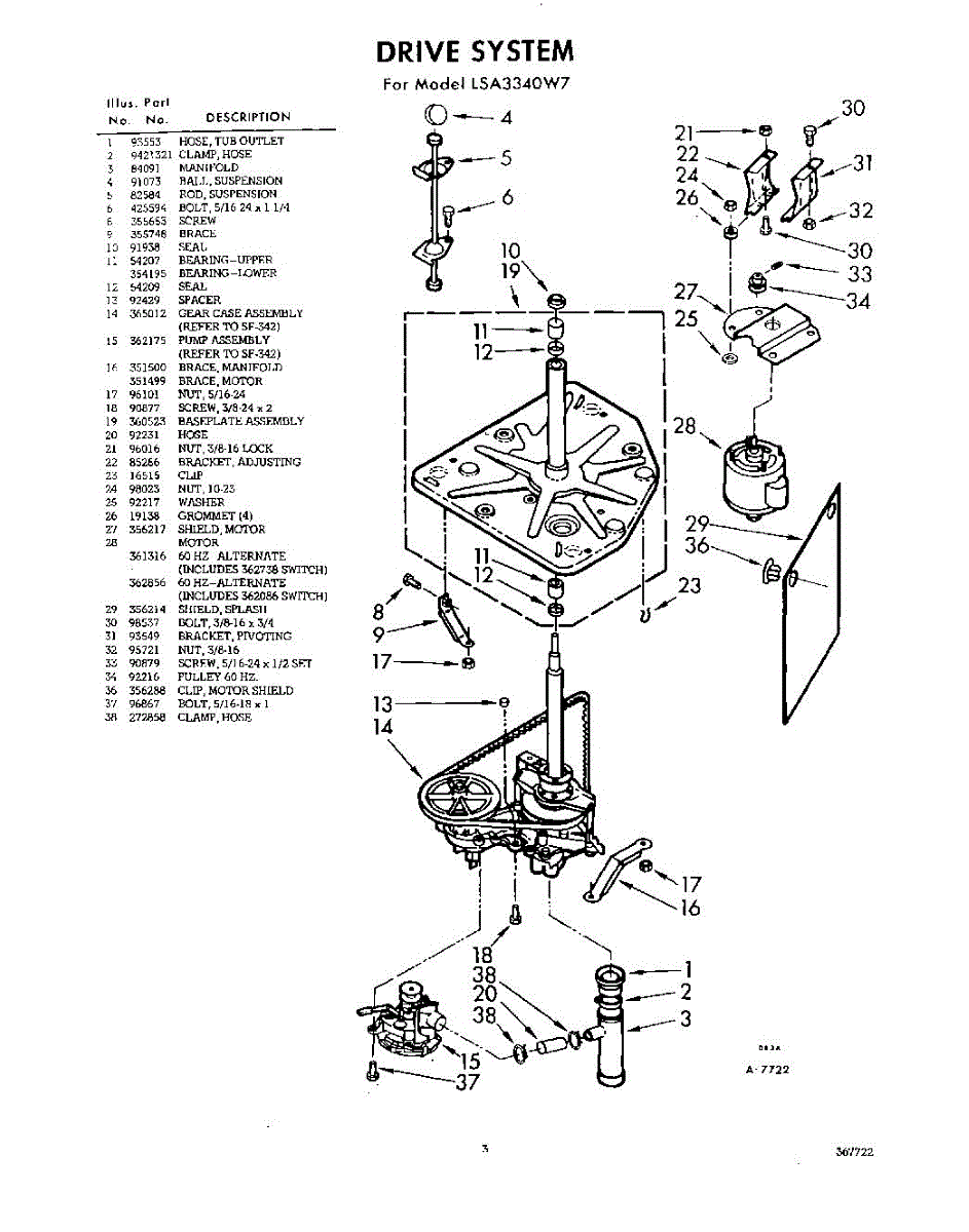 Parts for Whirlpool LSA3340W7: 03 - Drive System Parts