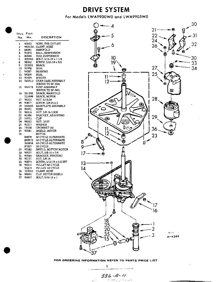 Parts for Whirlpool LWA9905W0: 03 - Drive System Parts