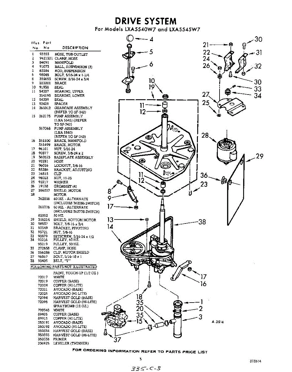 Parts for Whirlpool LXA5545W7: 03 - Drive System Parts
