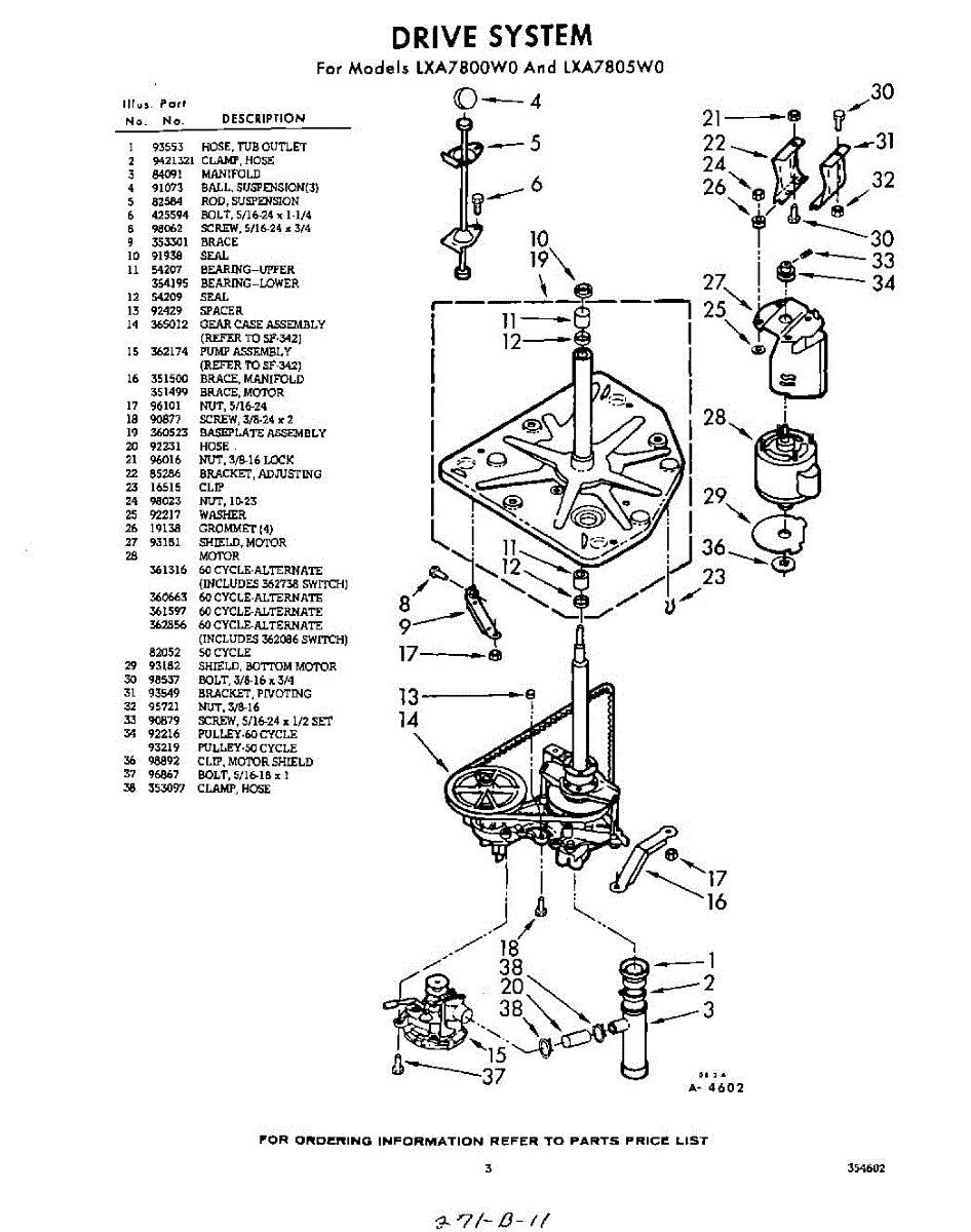 Parts for Whirlpool LXA7805W0: 03 - Drive System Parts