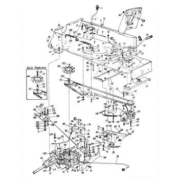 Tension spring for lawn tractors and mowers. Replaces worn, stretched, or broken springs. Essential hardware for maintaining proper tension and operation.