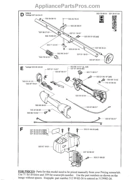 Parts for Husqvarna 123C: Drive Tube, Handle, Cover Parts